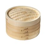Cook effectively and efficiently with this well-designed bamboo steamer. For wok or stockpot use, bamboo steamers are typically used for cooking dim sum and other traditional steamed foods. Steaming foods also gives an added health advantage over pan frying and sauteing, because you don’t have to use extra oils and food retains more of it’s natural nutrients and vitamins. Featuring a domed lid to trap steam and two baskets (two tiers) to hold foods, the steamer fits comfortably into a wok or stockpot (recommended 2 inches larger than steamer diameter), and is a testament to Joyce Chen’s high standards. 10″ diameter x 6″