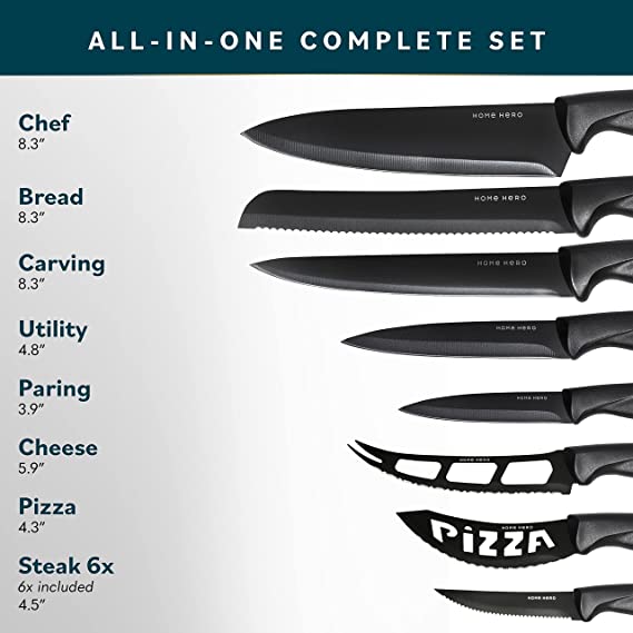 - One of a kind stainless steel knife set – Home Hero brings together a unique mix of quality sharpness, great value, durability & professional crafted accuracy. Now anyone, newbie cook or master chef can enjoy cooking much faster, easier, cleaner.