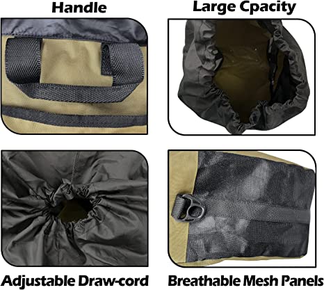 • Made of high-quality waterproof 1000D high-density nylon fabric with mesh panels, smooth zipper, wear-resistant draw cord, thick stitched seams and sturdy nylon handle. The inner fabric is lined with PU coating for waterproof. Through multiple quality inspections, it has excellent waterproof and wear-resistant functions. Ensure safe use in harsh environments.