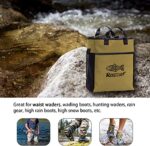 • Specially designed for air drying capabilities, breathable mesh panels and 4 eyelets on the bag allow to circulate air, reduce moisture accumulation, and provide ample dry storage space for waders. When waders or boots are inside, the drawcord can be pulled to completely close the opening of the bag. A zippered pocket helps you store some important items. Meantime, the black changing mat allows you to stand on and keep clean when changing into or out of your waders.