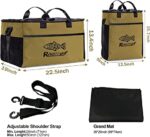 The fishing gear bag comes in different size: the large bag is 23*20*14 inches, the small one is 16*12.5*9 inches. The capacity is 108 L and 30 L respectively. The shoulder straps are adjustable so you can adjust it to your liking, and also can use it as shoulder bag, hand bag, crossbody bag. The durable materials and sturdy construction of this bag ensure many seasons of use. It’s perfect for storing waders, boots, rain gear or extra dry clothes.